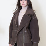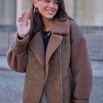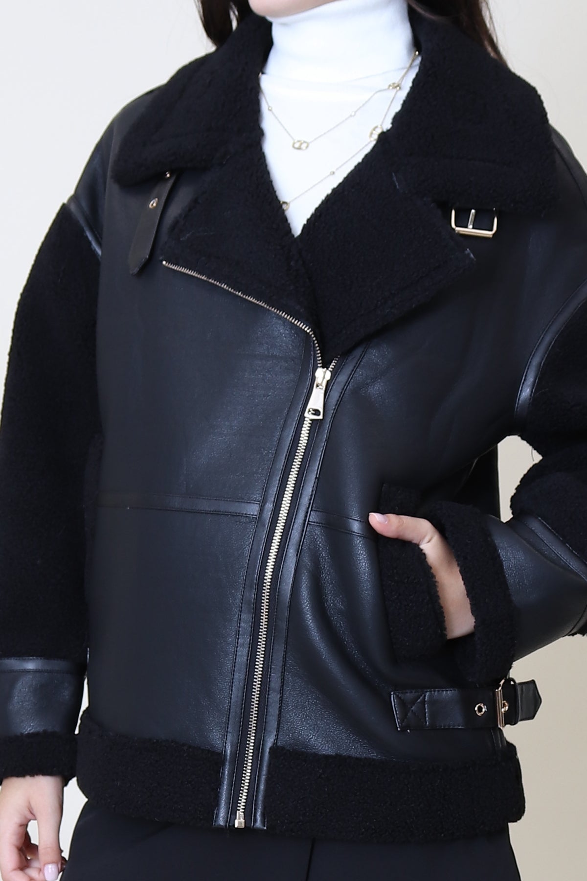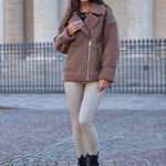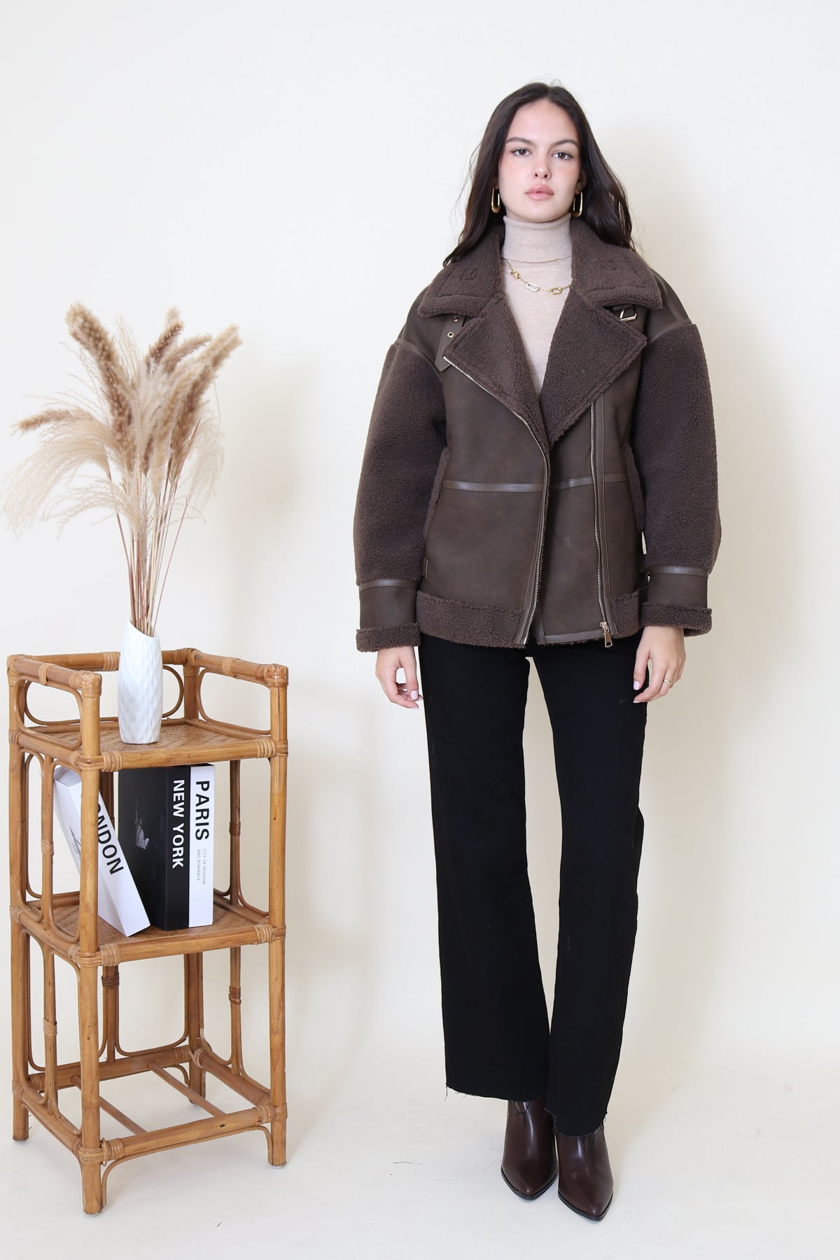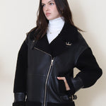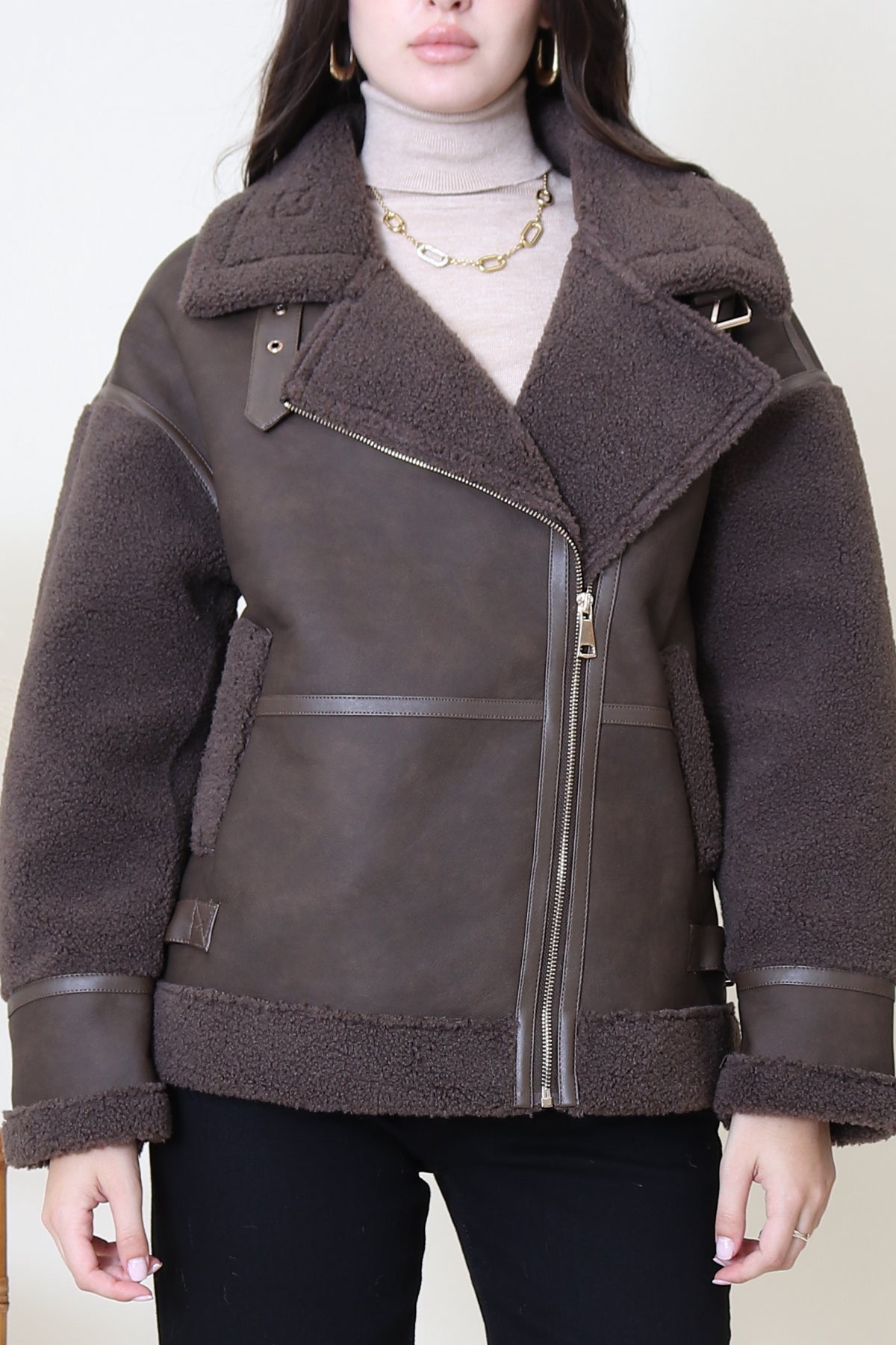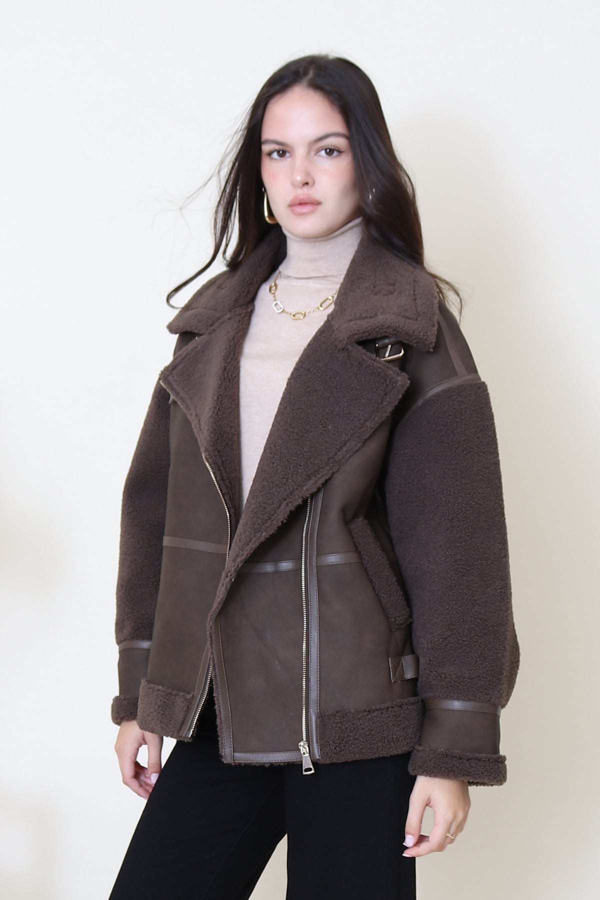 Veste aviateur oversize effet moutonnée doublée pour un confort optimal et un style affirmé en saison froide.