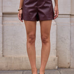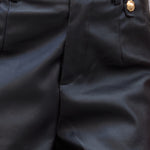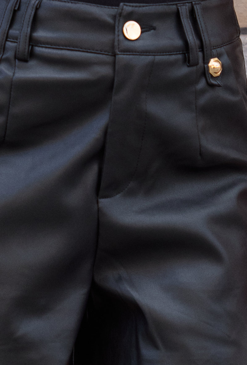 Short en similicuir à taille haute orné de boutons dorés sur le devant. Une pièce moderne et élégante, idéale pour sublimer vos tenues du quotidien avec une touche sophistiquée.