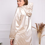 - Capuche : Intégrée avec cordons de serrage à embouts dorés