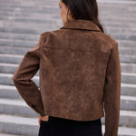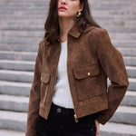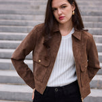 Veste courte effet daim idéale pour la mi-saison, à la fois élégante et pratique pour un usage quotidien.