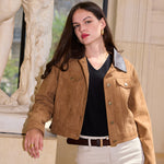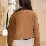 Veste courte en effet daim idéale pour la mi-saison et les journées fraîches. Sa matière apporte une touche élégante et structurée au quotidien.