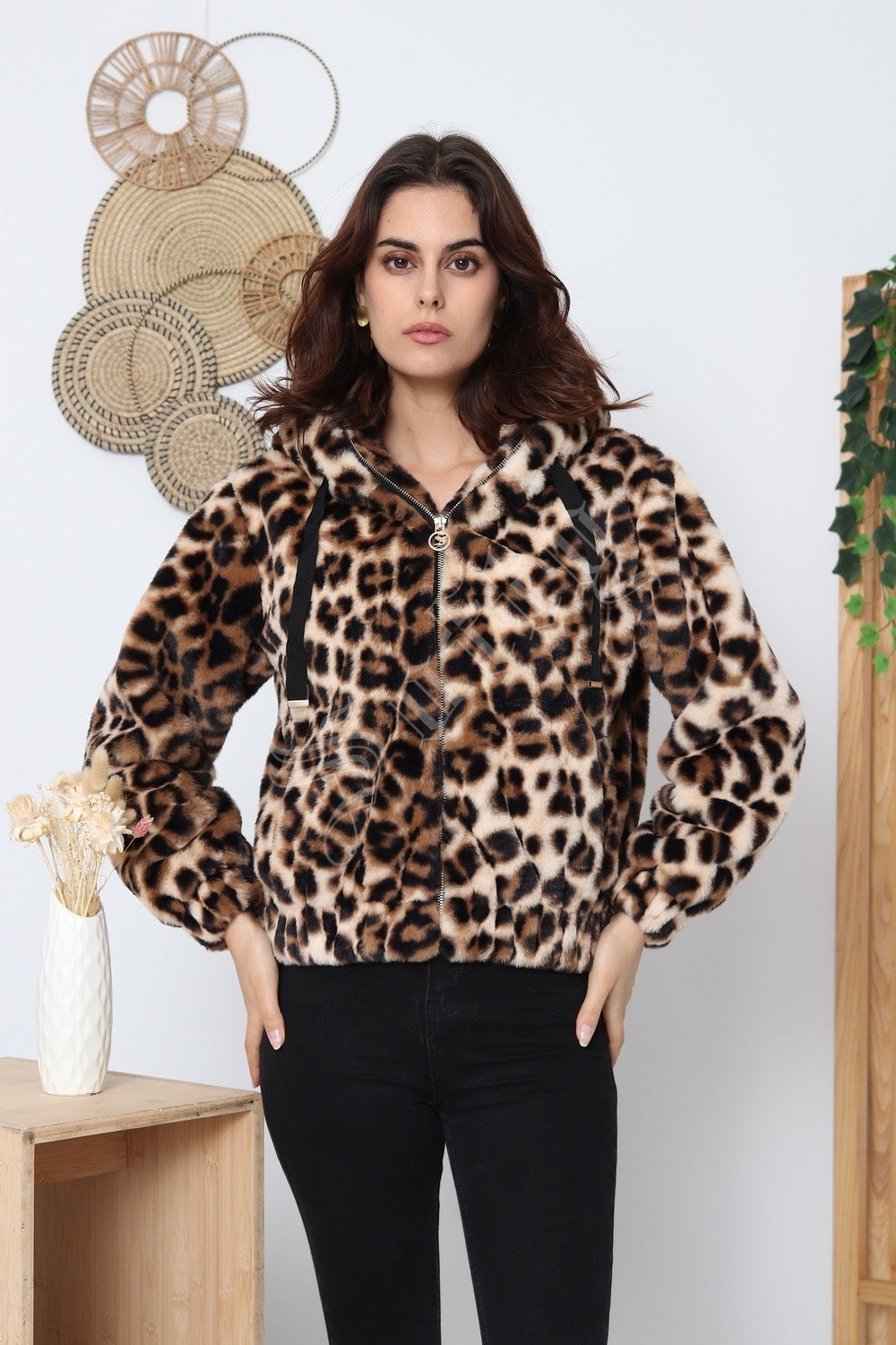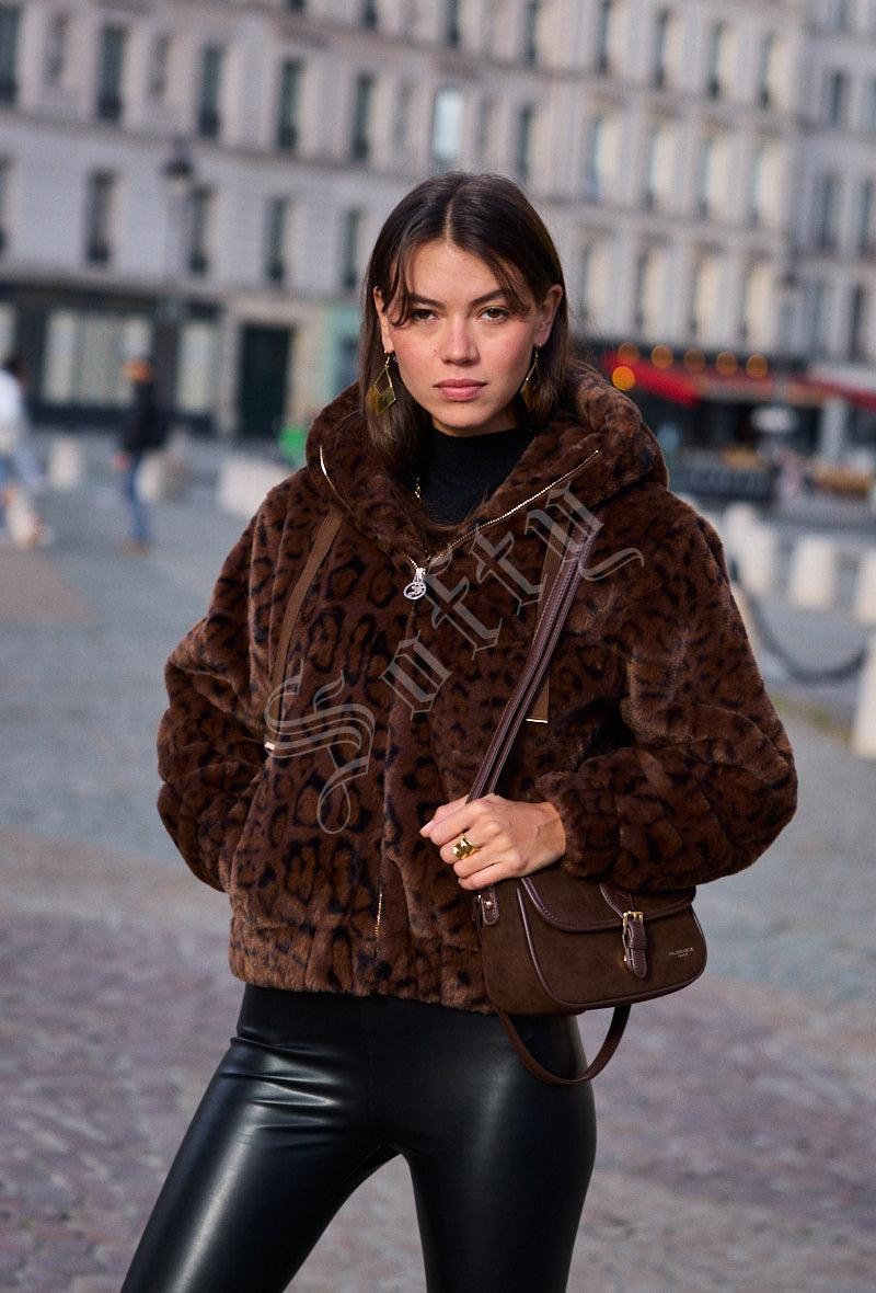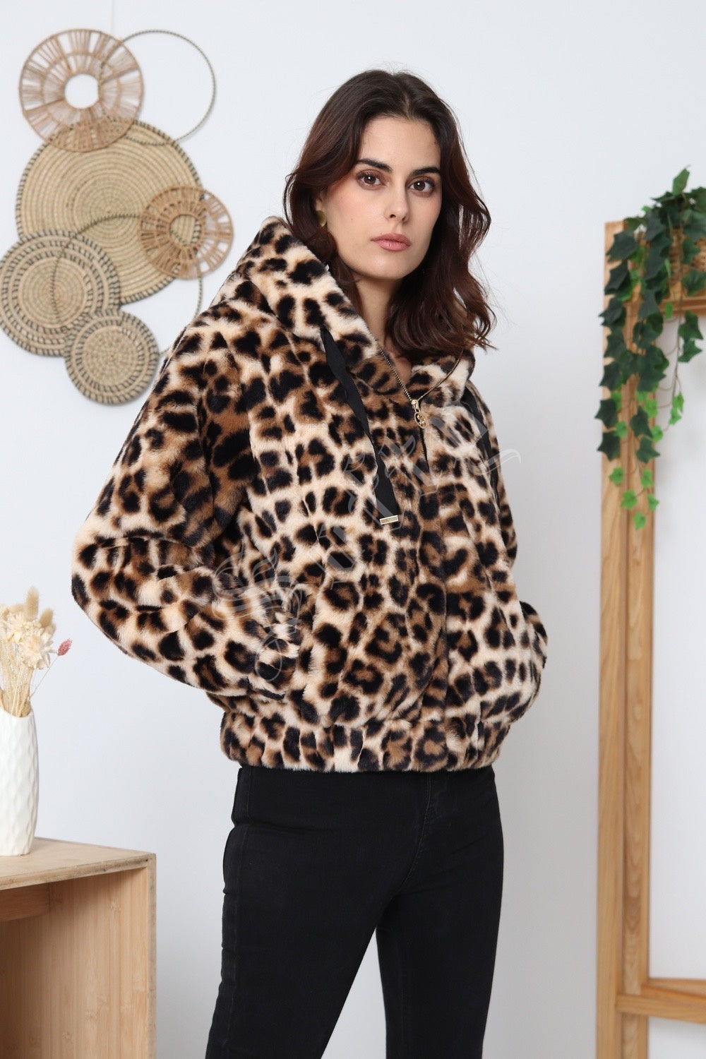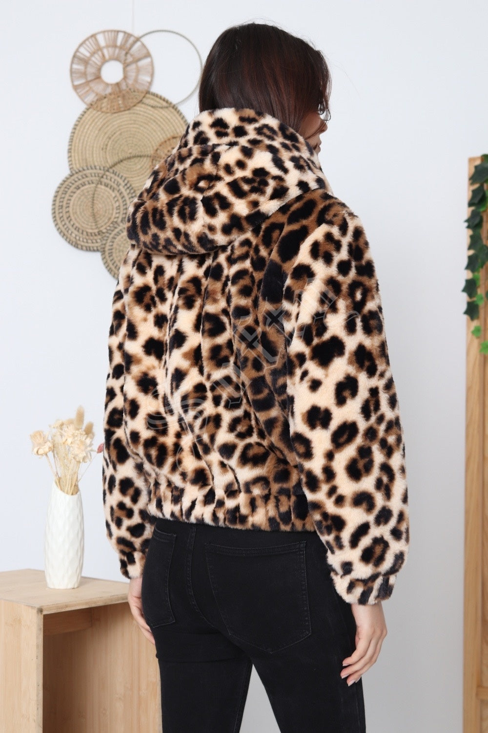 Veste chaude en fausse fourrure douce, idéale pour affronter les journées froides avec élégance. Son imprimé léopard et sa coupe décontractée apportent une touche sophistiquée à vos looks d’hiver.