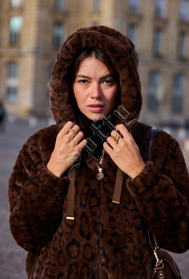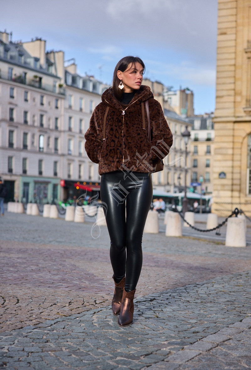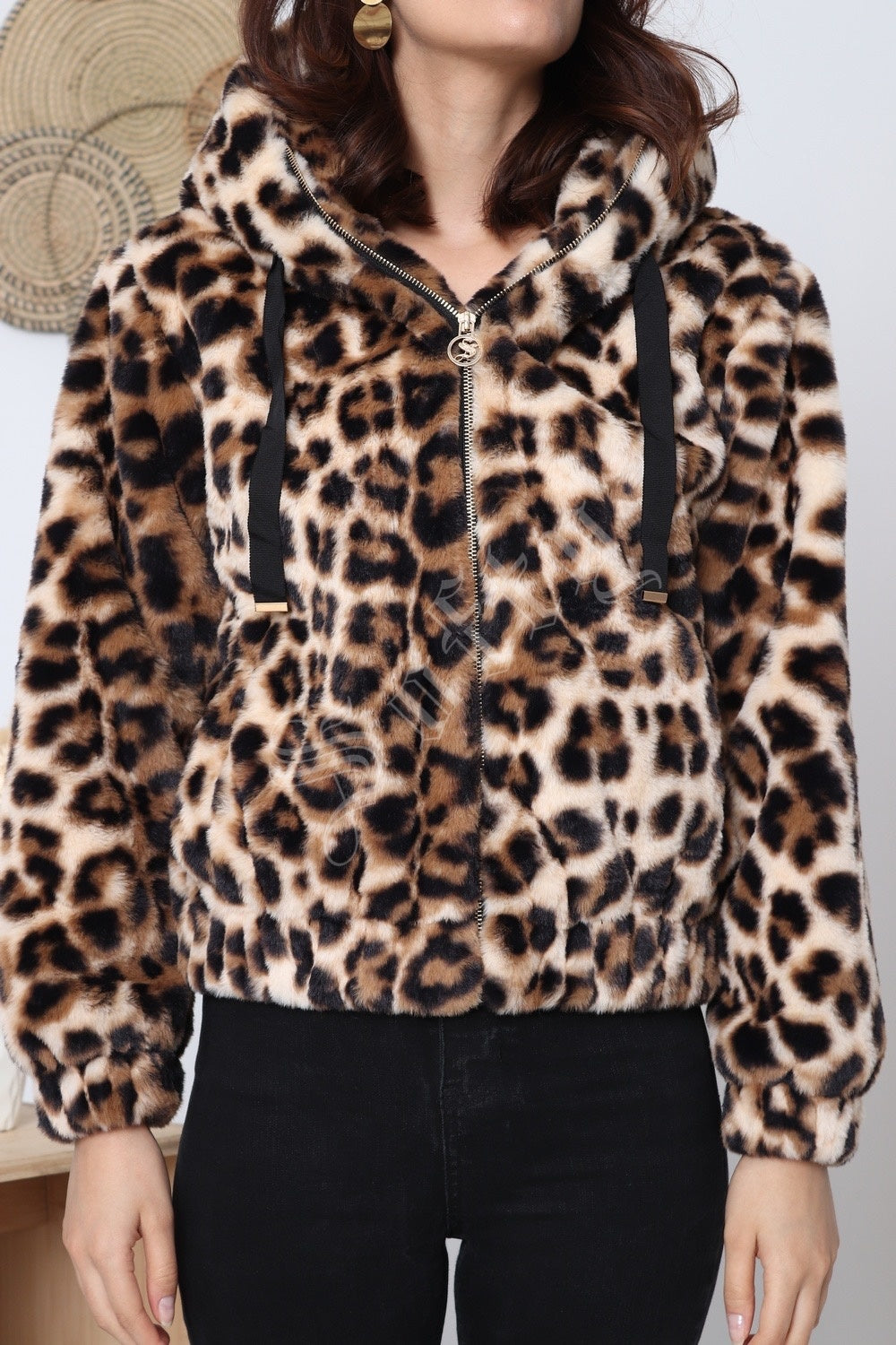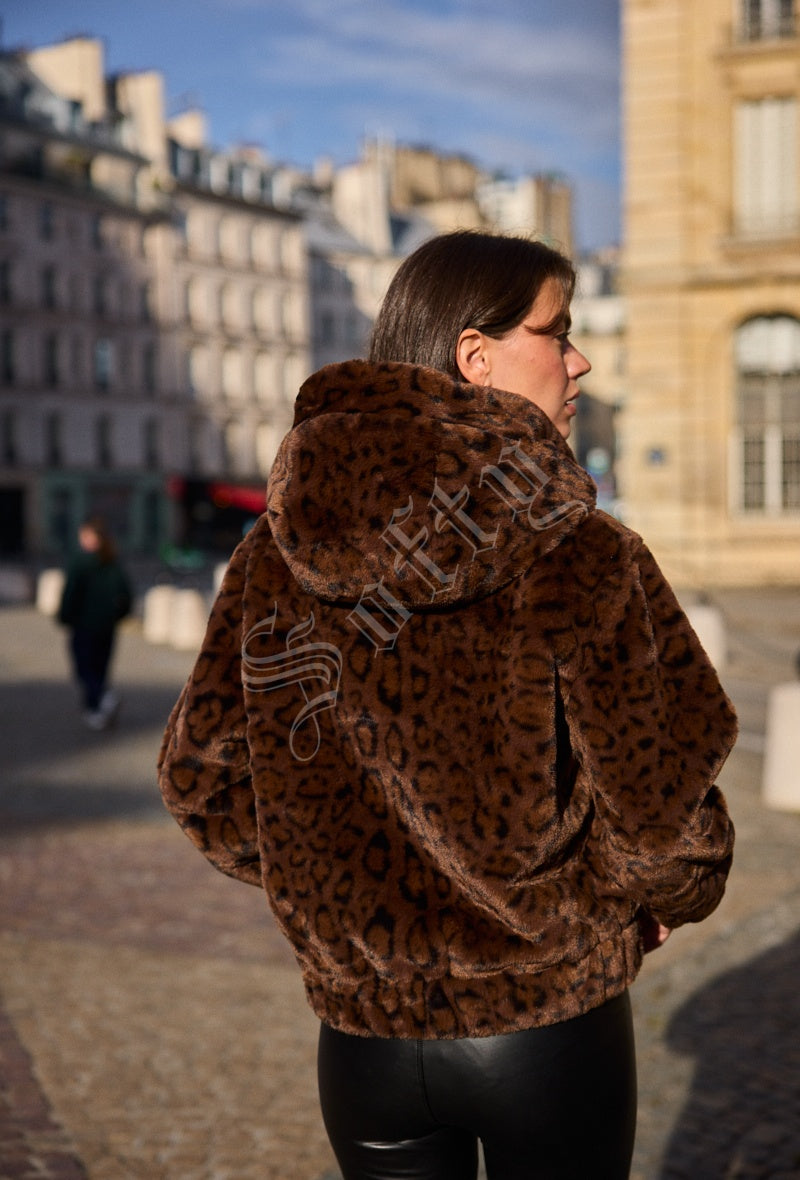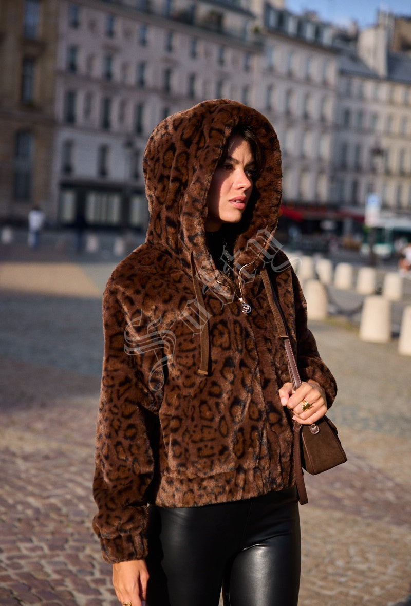 Veste chaude en fausse fourrure douce, idéale pour affronter les journées froides avec élégance. Son imprimé léopard et sa coupe décontractée apportent une touche sophistiquée à vos looks d’hiver.