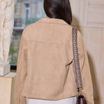 Veste en suédine légère et souple, pensée pour accompagner les journées de mi-saison avec confort et élégance. Sa coupe droite et ses finitions soignées en font une pièce polyvalente et facile à porter au quotidien.