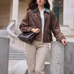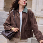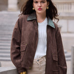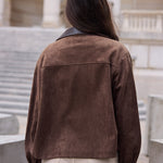 Veste en suédine au toucher doux, offrant confort et élégance au quotidien. Sa coupe droite et son col contrasté en font une pièce idéale pour la mi-saison.