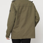 Adoptez un look audacieux et fonctionnel avec la Veste Militaire Believe, dotée de patchs distinctifs et de quatre poches plaquées pour un style unique.