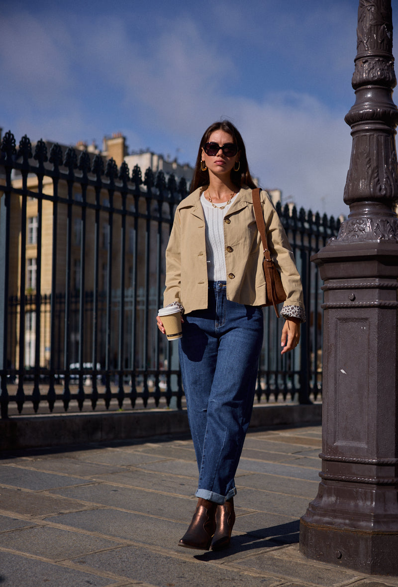 Veste légère de mi-saison, idéale pour les déplacements quotidiens. Sa coupe courte et ses finitions contrastantes apportent une allure soignée tout en restant fonctionnelle.