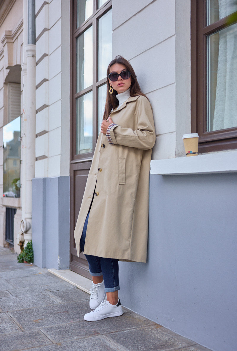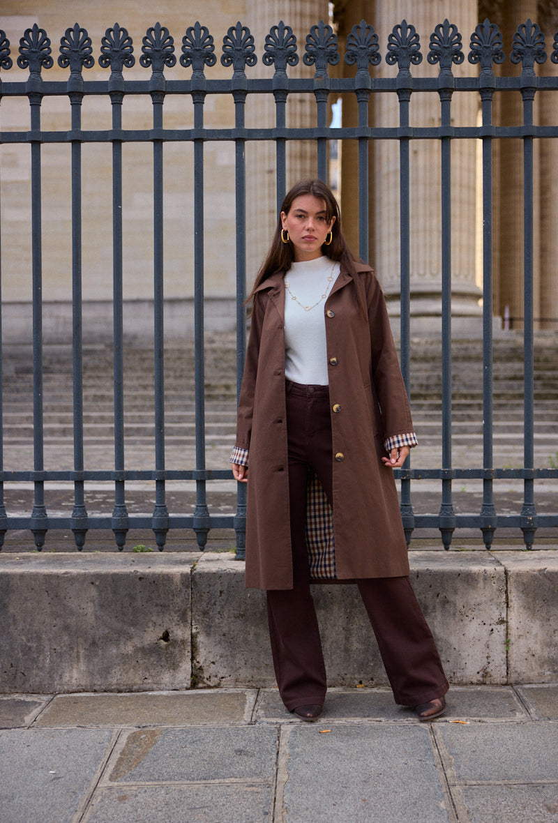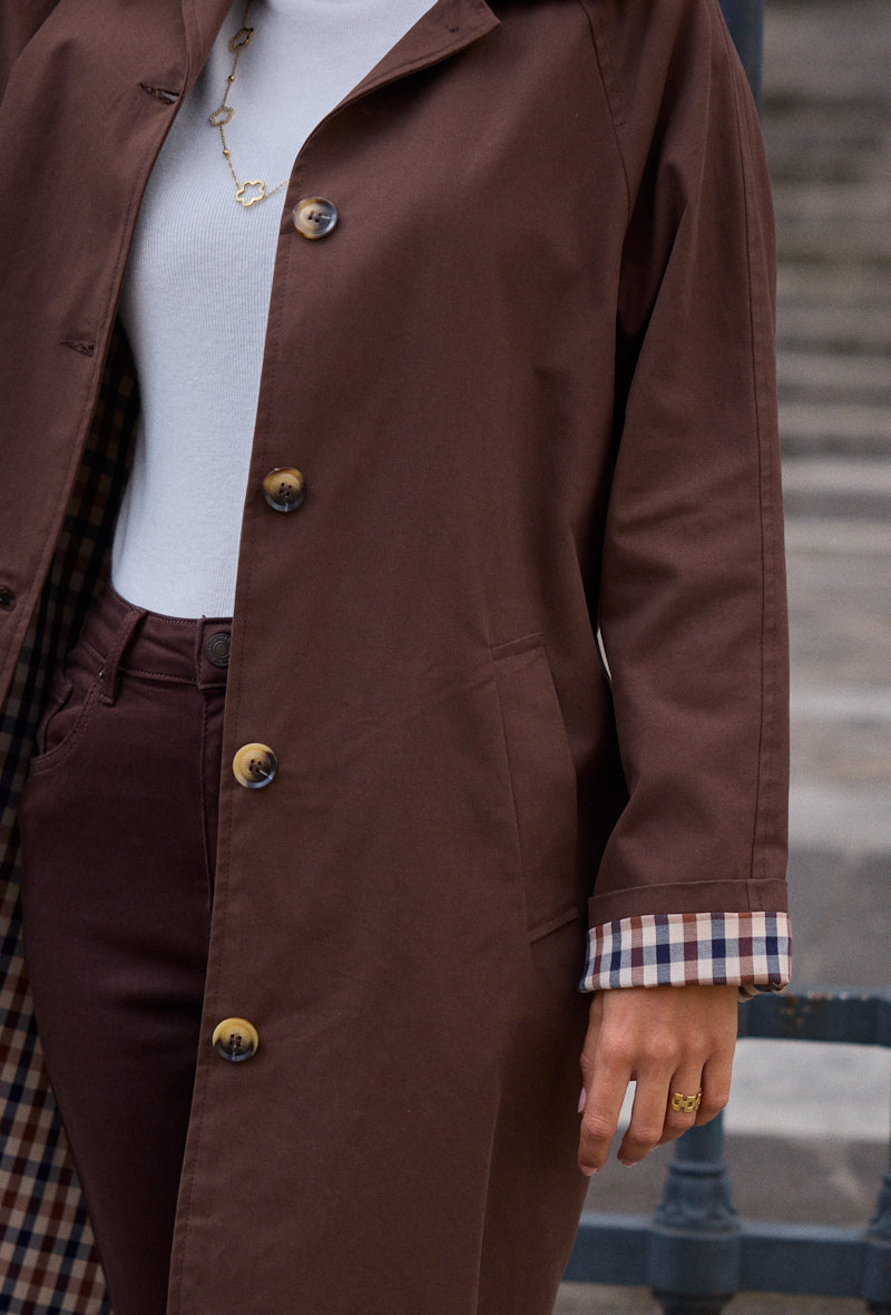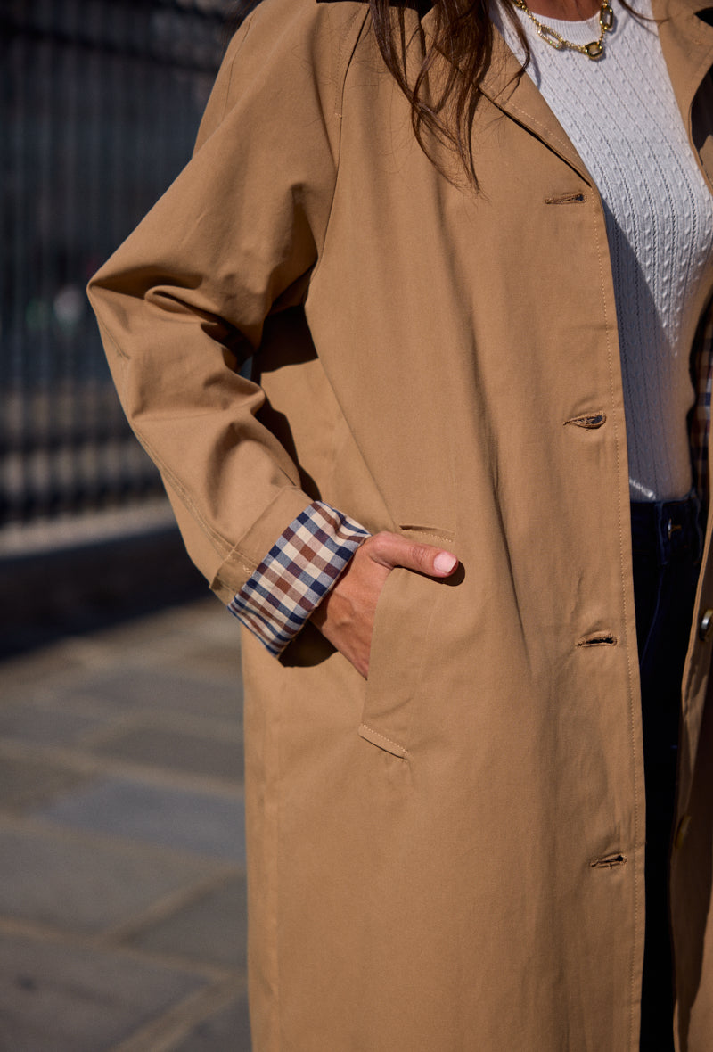 Trench mi-long doublure à carreaux Alina