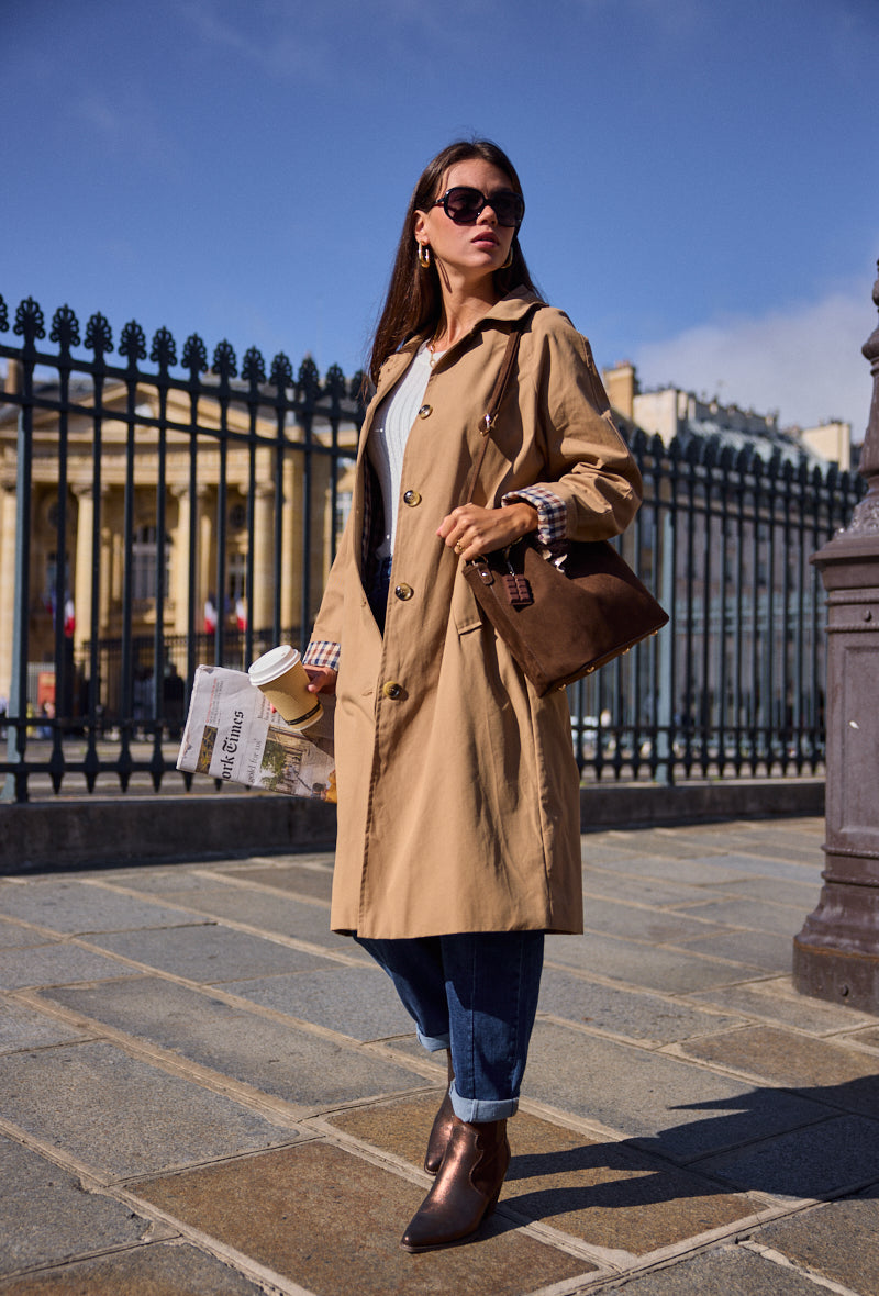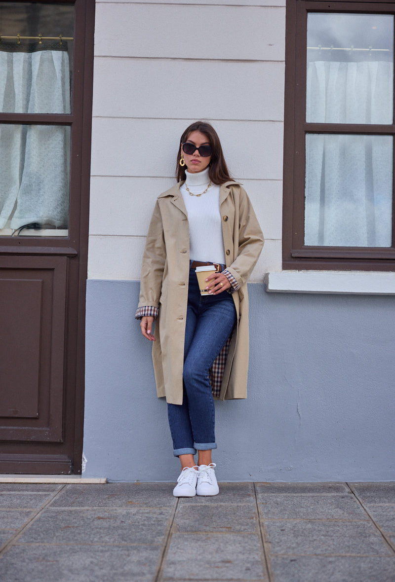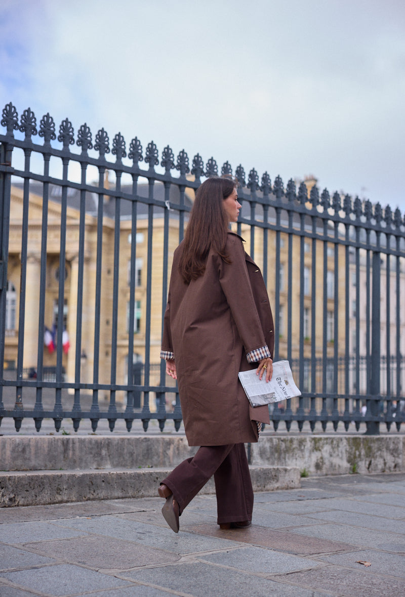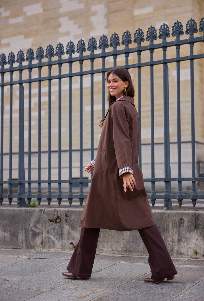 Trench mi-long doublure à carreaux Alina
