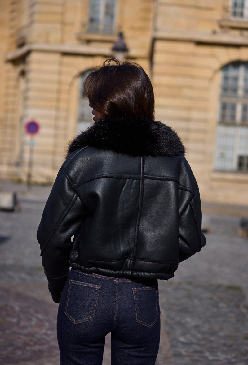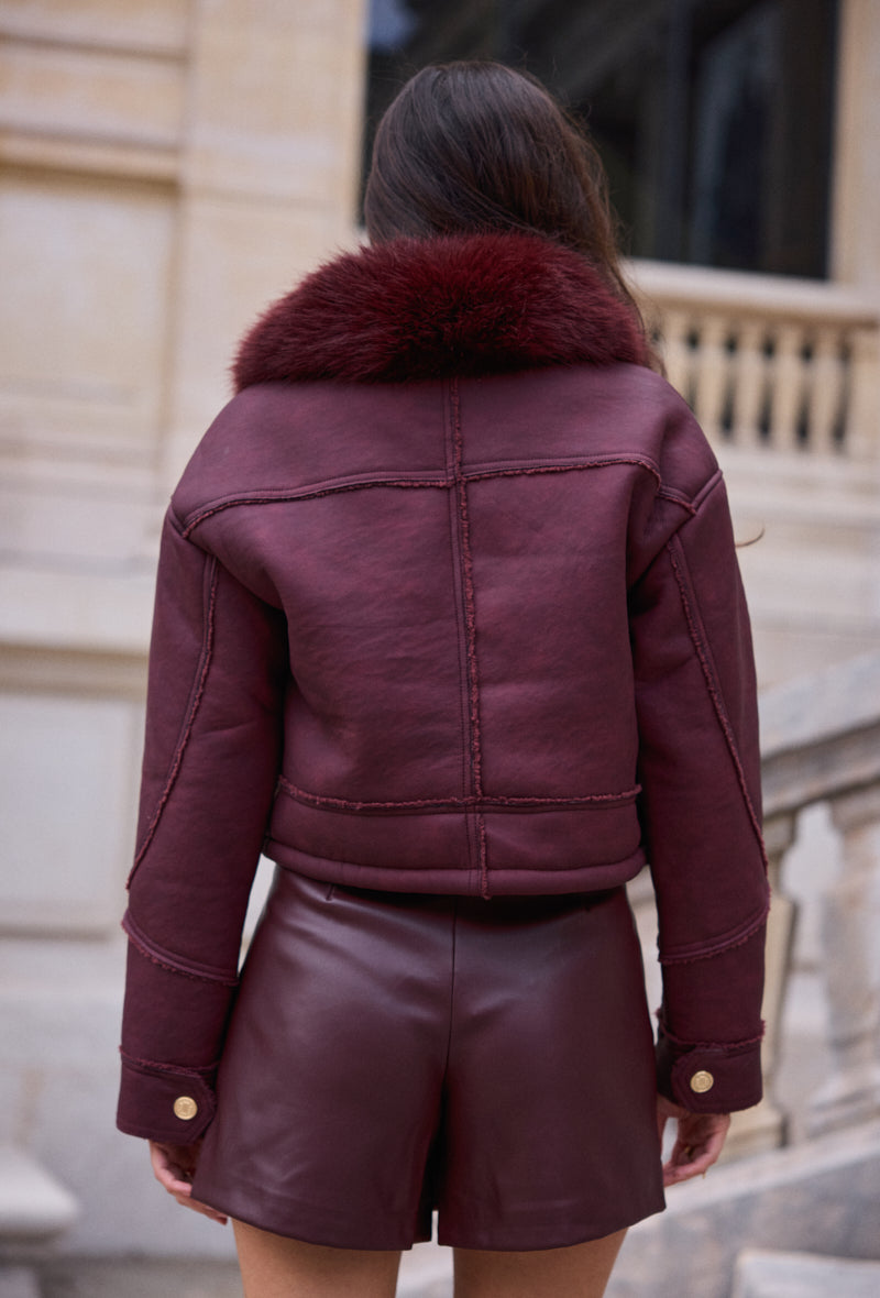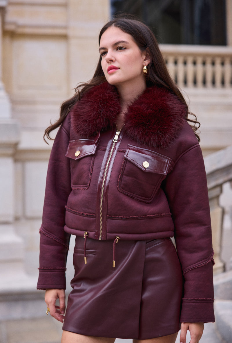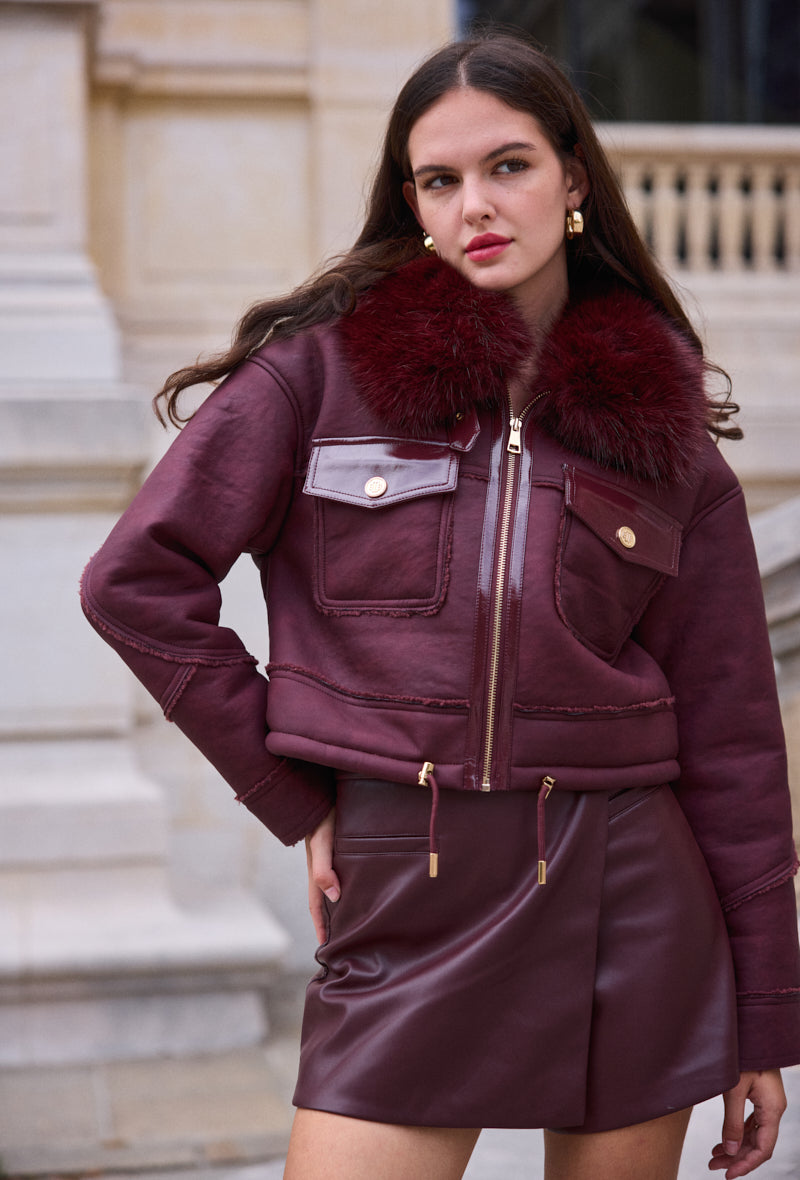 Blouson court à col fausse fourrure, parfait pour un style urbain élégant et réconfortant en saison froide.